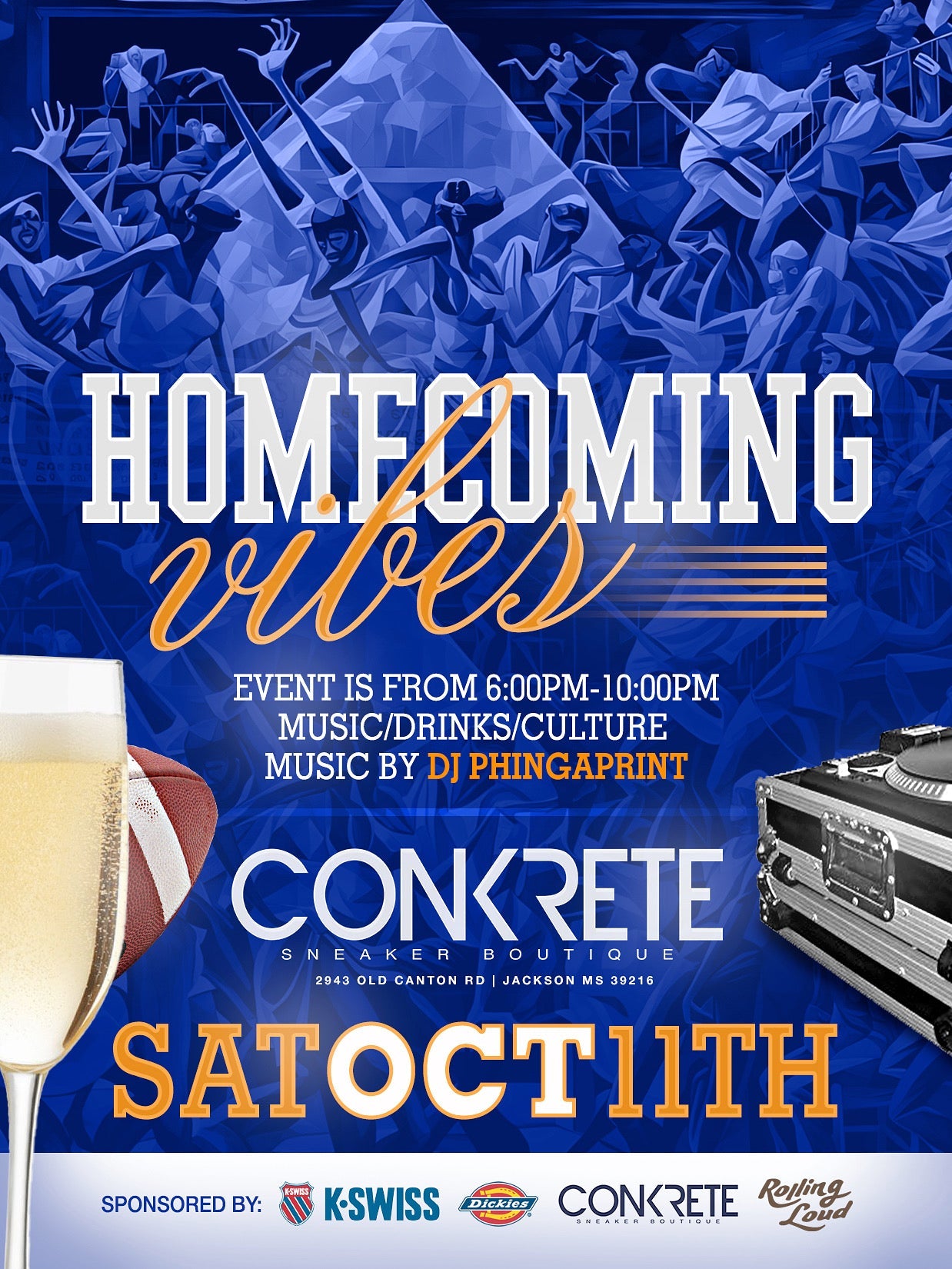 This event is a free event that'll be packed with ole skool kickback vibes! The music will be curated perfectly by the one and only DJ Phingaprint. Free Drinks While They Last. We are going to raffle off shoes by K-Swiss and clothes from Dickies and Rolling Loud. To be entered into the raffle you must RSVP by 6pm on Friday October 10th.